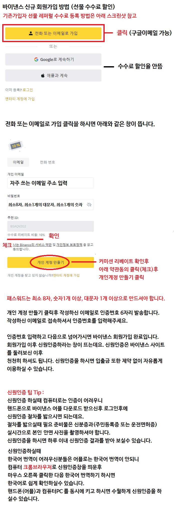 위 링크 주소를 클릭 하시면 아래의 바이낸스 회원가입(수수료할인) 창으로 이동합니다.